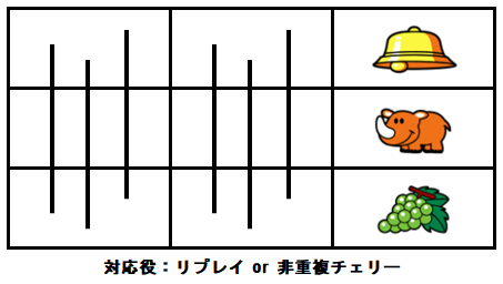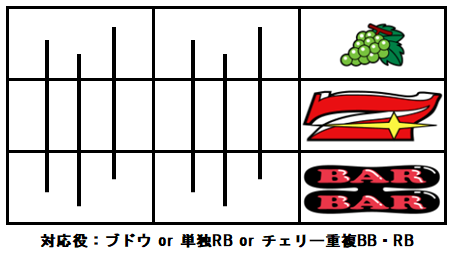 チェリーが出現した場合はチェリー重複ボーナスが確定し、この場合はBB・BRどちらのボーナスの可能性もある。チェリーが停止せずにブドウが外れた場合は単独RBが確定する。
