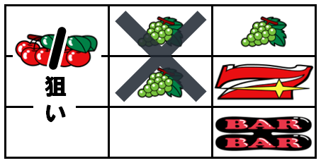 実はブドウが揃った時の右リールの7図柄の停止位置から、どの位置で7図柄を押したのかを知ることが出来るのだ。