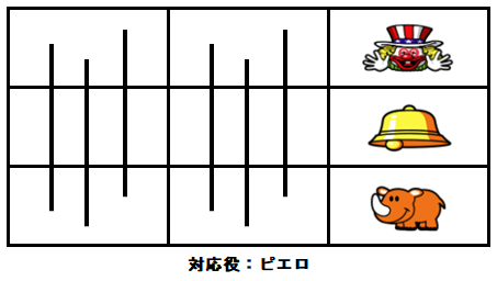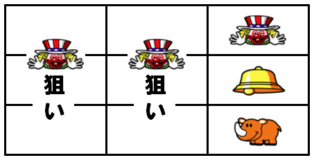 7図柄が3コマ滑って上段にピエロが停止した場合はピエロ確定となるので、残りリールにはピエロを狙おう。
