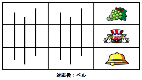 ただし、7図柄を一コマ早く押してしまった場合はベル成立でもこの出目が停止してしまう。この停止形からブドウが揃った場合はビタ押しミス確定だ。