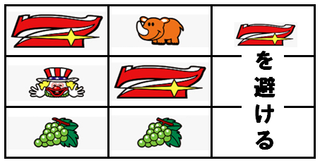 上段に7図柄が停止した場合はブドウが成立しているので、残りリール7図柄を避けてブドウを入賞させる。