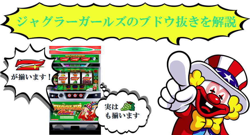 ジャグラーガールズでも今までのジャグラーシリーズ同様にブドウ抜きの効果があることが分かった。機械割は設定にもよるが大体0.2%~0.3%アップすると考えられる。
