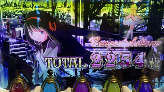 ラッシュで得た数百枚のメダルでは500Gハマりを凌ぐことは叶わず、僕はサンドに金を入れることしか出来なかった。マギカチャレンジ失敗…。心が折れかけたがもう一度ラッシュに入れるまでは頑張ろうと回したところ、スイカからキュゥべえチャレンジ。絶対外したらアカンやつ。気合で成功させてエピボ当選。エピボ中に全くレア役引けずに補償乗せのみ。ただ、このホリークインテット中にまどかでほむら図柄狙い発生。心の中で500枚乗れッと願うも、現実は100枚乗せ。それでもラッシュ中に細かい上乗せをして500枚ほど獲得することができた。