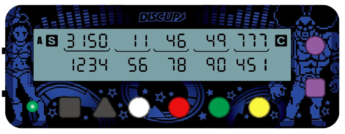 同時発売のこちらはパープルベースに新キャラのミアとDAN-Dのリアルバージョンがプリントされている。ディスクアップと言えば4号機の初代から紫色の筐体が印象的だったので、こちらのカラーも嫌いじゃない。ただ、リアルバージョンのキャラクターなら、やっぱりシンディさんが見たかったかも…。
